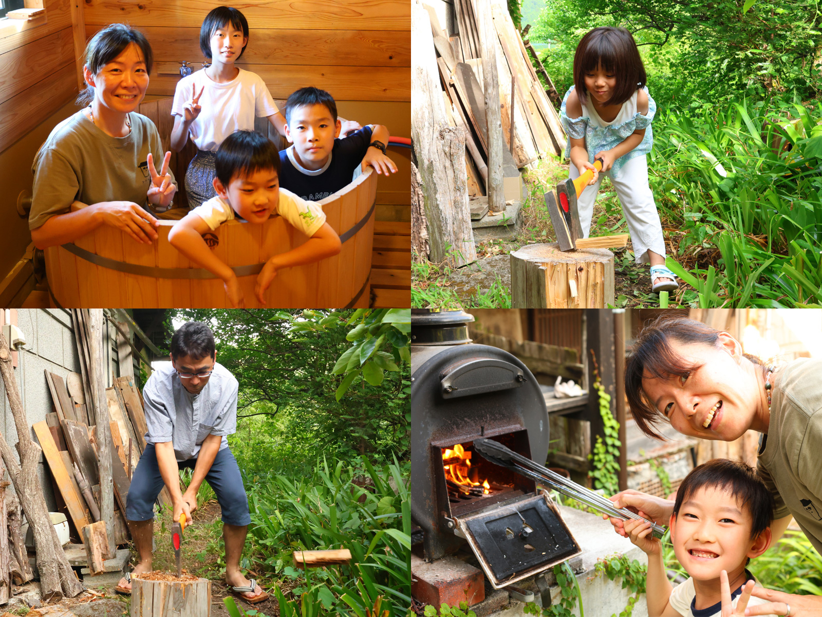 薪をくべたり、渓流の川遊び、季節を感じる収穫。