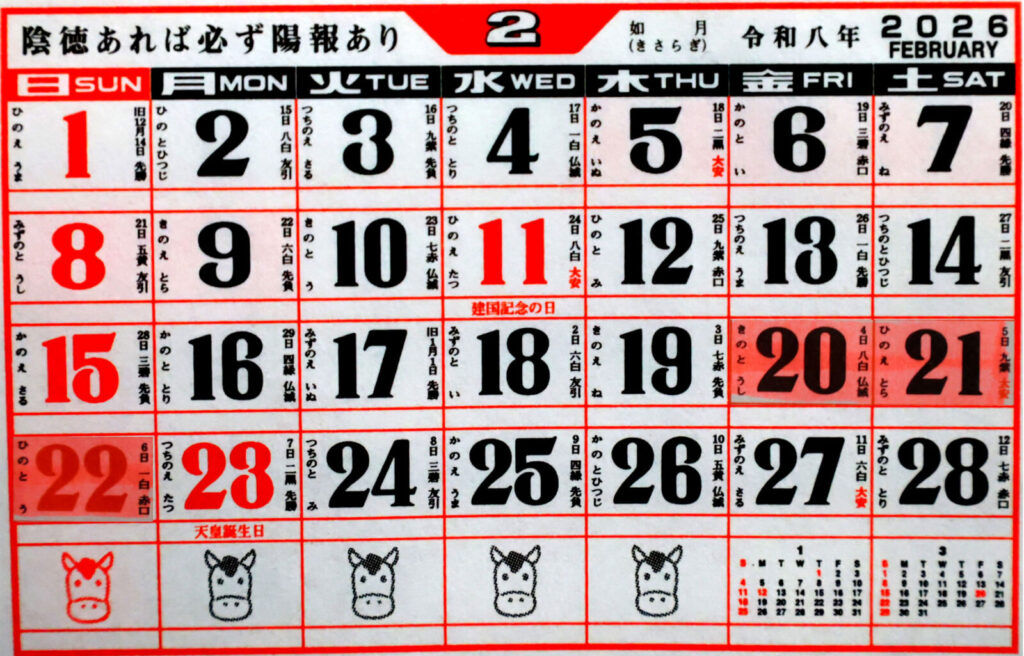 2026年ほっこり屋 宿泊予約状況